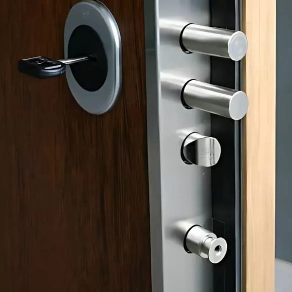 Drzwi PM 42S to nie tylko efektywna bariera akustyczna, ale także solidna ochrona przed włamaniami. Wyposażone są w zamek zabezpieczający z 7 punktami zamknięcia oraz 4 bolce zabezpieczające przy zawiasach, co zapewnia wyjątkowy poziom bezpieczeństwa. Jest to doskonałe rozwiązanie dla wejść do mieszkań, domów czy biur, gdzie zarówno bezpieczeństwo, jak i cisza są priorytetami.
